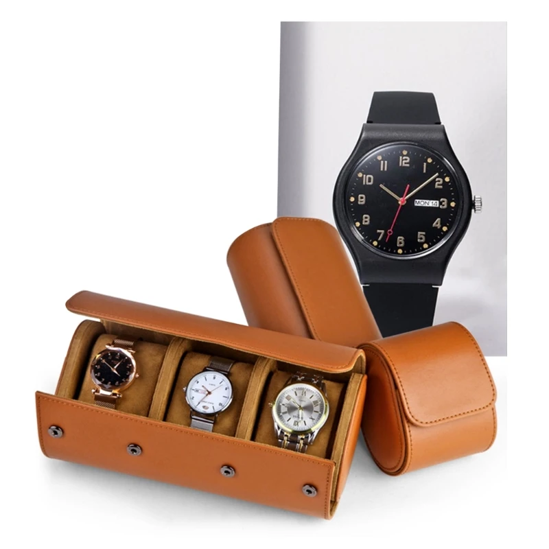 🧵 Material premium – couro genuíno com forro interno em camurça macia, que protege os relógios de arranhões.